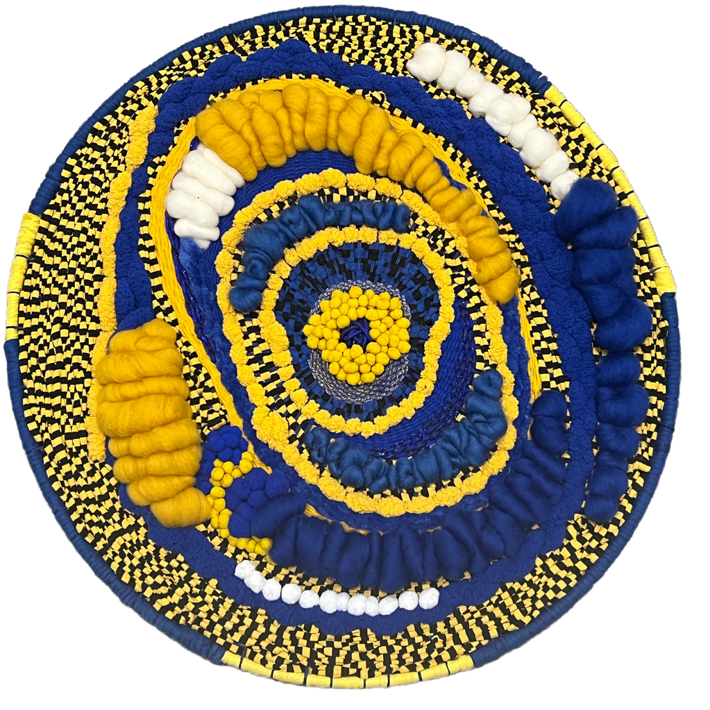 Step into the universe of wavelike formations with this pulsating piece. Whether you see a star's birth or demise, it's completely subjective. Viewers will be drawn into this piece due to its size and rhythmic rings. Varied textures and repeated patterns are hypnotic and spell bounding. "Gravity" offers us a glimpse into what could be the universe around us, or perhaps